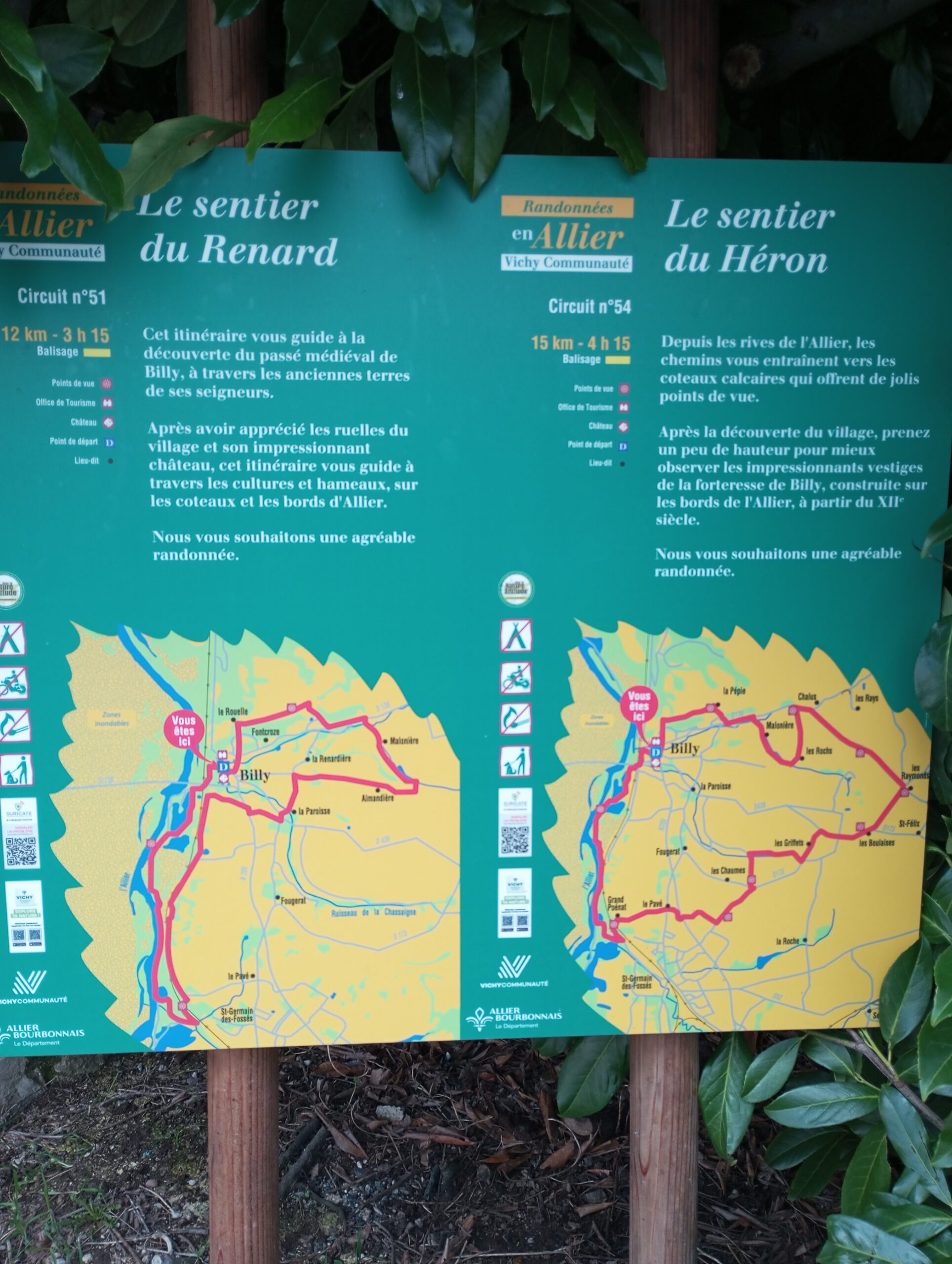 Partez pour une randonnée à travers les ruelles et les paysages autour de Billy ! Ce circuit pédestre relie le centre du village à ses hameaux, sur les coteaux et le long des bords de l’Allier
